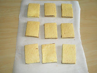 بعد اخراج كيك ميرندينا من الفرن نزيل الجوانب و نقسمها الى اثنين بنفس الحجم